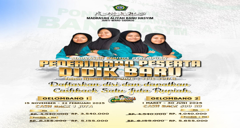 Selamat datang kepada seluruh calon siswa, orang tua, dan keluarga besar MA Banu Hasyim. Pada kesempatan yang penuh berkah ini, kita berkumpul untuk membuka Penerimaan Peserta Didik Baru (PPDB) tahun ajaran 2024/2025, melalui jalur prestasi dan reguler. Ini adalah saat yang dinanti-nanti, di mana kesempatan untuk bergabung dengan keluarga besar MA Banu Hasyim terbuka lebar bagi semua yang bersemangat untuk belajar dan berprestasi.
